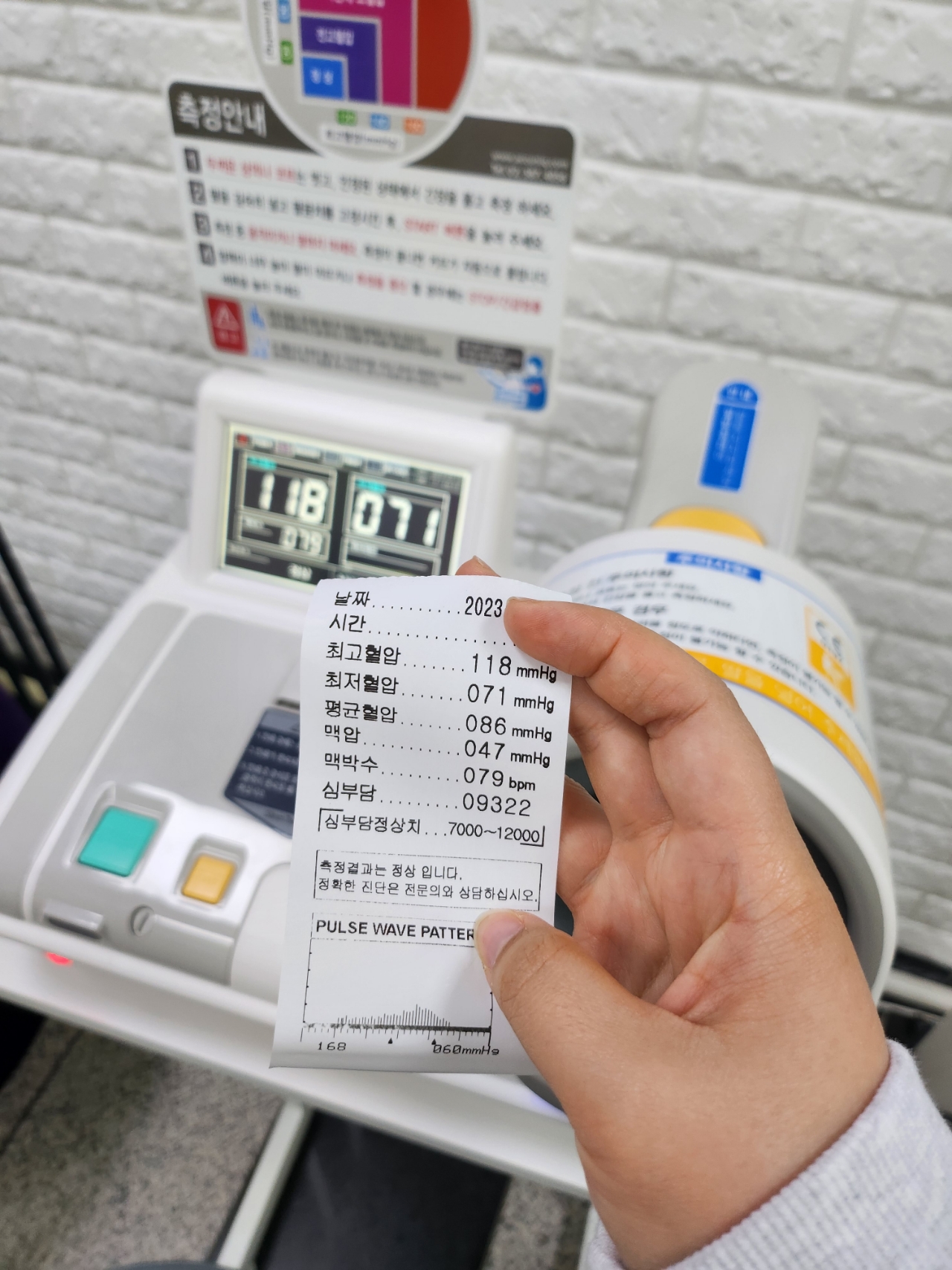 위의 사진은 제가 최근에 기관에서 측정한 혈압 사진인데요!