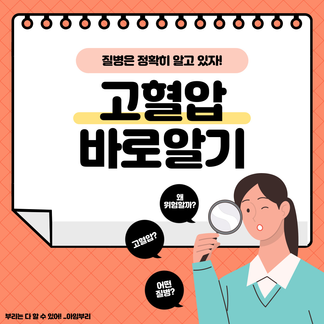 안녕하세요! 아임~부리입니다 :D / 이번 글에서는 고혈압을 어떻게 관리하는지 알아보는 시간을 가져 볼 거예요! 지난 글에서 고혈압에 대해 어떤 질병이고, 왜 위험한지 자세히 적어놓았으니 아