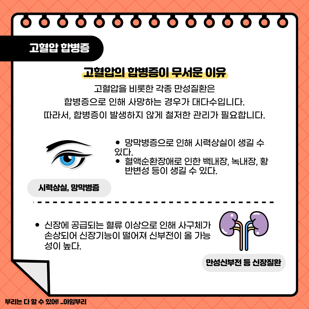 고혈압으로 인해 발생한 합병증과 고혈압이 그 위험인자이기 때문에