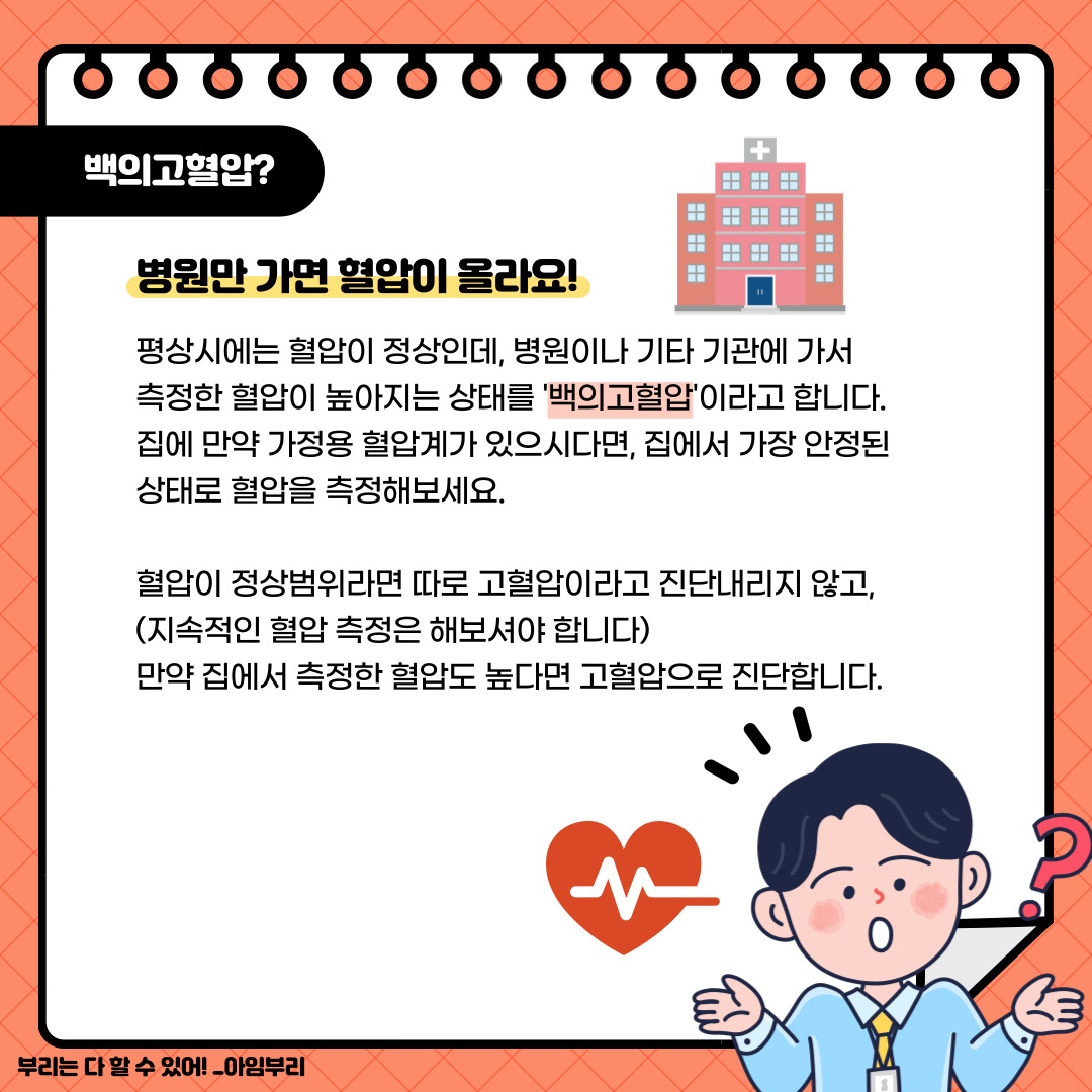 위와 같은 상태를 '백의고혈압'이라고 하는데요,