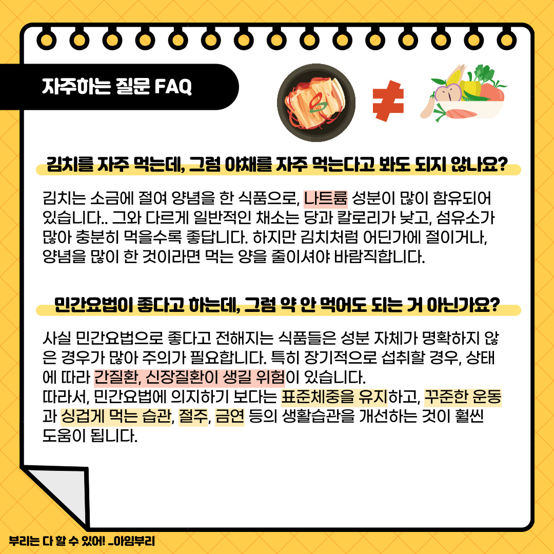 김치를 평소에 자주 먹는데, 김치 먹는 거로 야채를 자주 섭취한다고 봐도 되지 않나요?