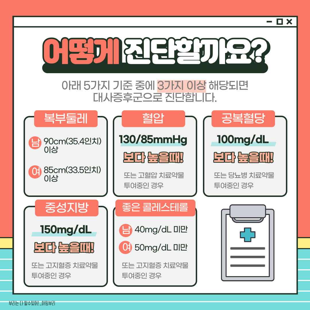알 수 있기에 혹시라도 대사증후군 진단 기준으로 부합된다면