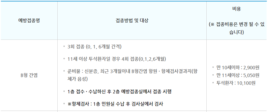 1) 서울시 광진구 보건소 - B형 간염 예방접종