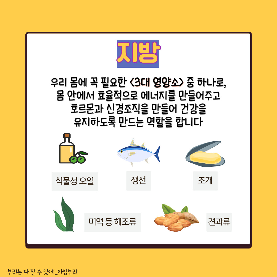 탄수화물이랑 같이 우리 몸에 꼭 필요한 영양소 중 하나이고요!